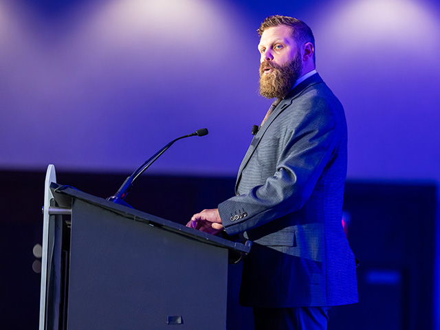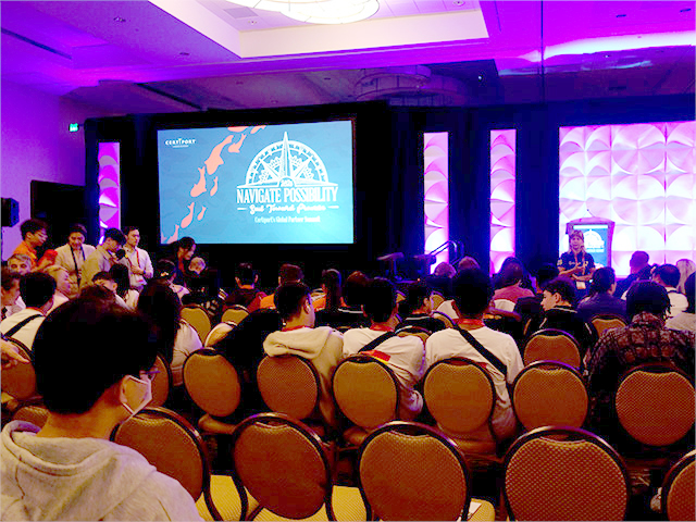 まずは、本大会を主催するCertiportのTy Kenworthy氏の挨拶からスタート。その後、Pearson社のKrista Ketchmark氏、過去の世界学生大会に出場したKai Charvet氏とJacob Sedesse氏が登壇しました。