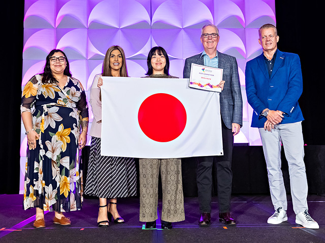 日本代表のガラムカリさんは、自らの名前と国名を述べてから壇上中央へ進み、表彰状を手に笑顔で記念撮影をしました。