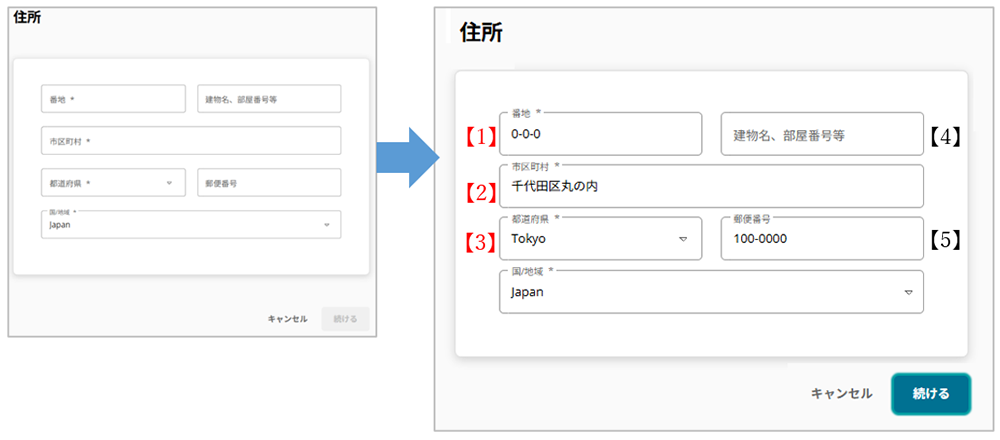 | 【4】 | 任意 | 建物名、部屋番号などの入力 |